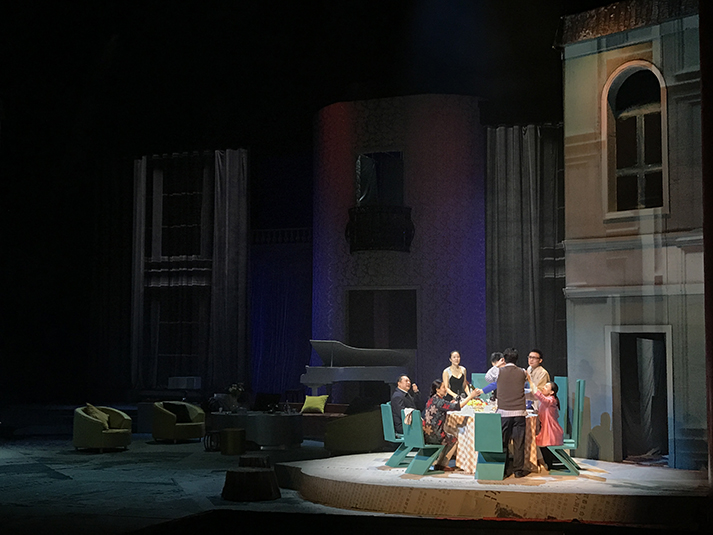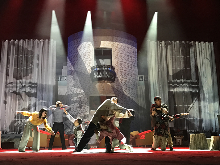 該劇有對人物靈魂的拷問、對人性的追問,也有對生命意義的表達,在雄渾凝重的燈光設計風格上,著重呈現劇目的人物塑造。該劇中,LED切割燈GL-6和LED圖案燈GL-5,承擔了劇目面光和舞臺特效的作用,憑借高亮度、均勻的光斑、全面的功能和穩定的運轉,成功為該劇護航。尤其是LED燈具在調光、頻閃上更加細膩線性的表現,有助于劇情傳達更加微妙細致的情感。另外,天幕燈C5的八色混色,讓色域寬廣、換色細膩,投光式渲染法使得效果均勻自然、一致性高,渲染劇場氣氛。