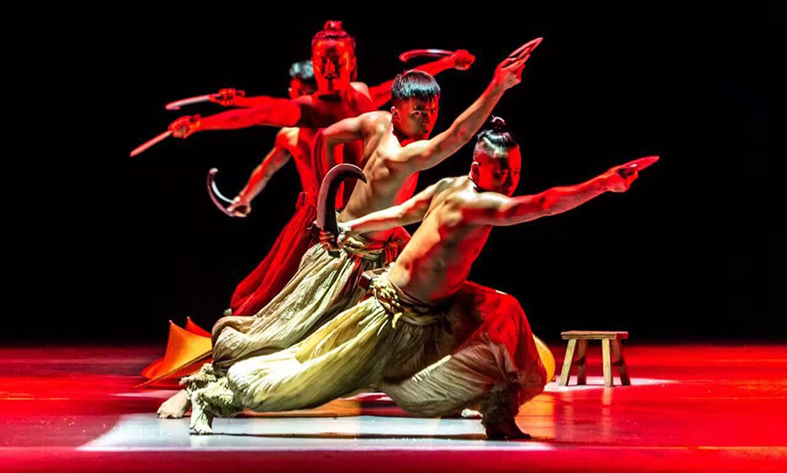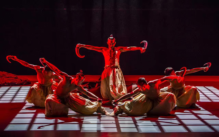 《巫卡調恰》的漢語意思是外婆的歌謠,這部舞蹈詩的創作植根于當地苗族文化,又拓展到整個苗族社會,通過巫卡(外婆)吟唱古歌這一主線,詮釋了苗族遷徙史以及苗族社會生活的各種習俗,具有強烈形式感和邏輯性。