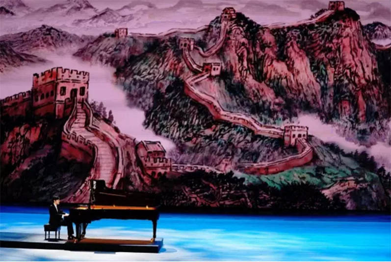 整場文藝晚會具有東西方交融、歷史和未來交融、傳統和科技交融以及不同藝術間交融,多種交融的觀點和方法始終貫徹到每個主題。器樂和戲曲的生動表演展示中華文化底蘊和輝煌歷史,青花絲綢與芭蕾藝術結合、鋼琴與繪畫相結合體現中外藝術有機融合和創新,彰顯文化自信,聚盛世中國之璀璨,展“一帶一路”之風采。