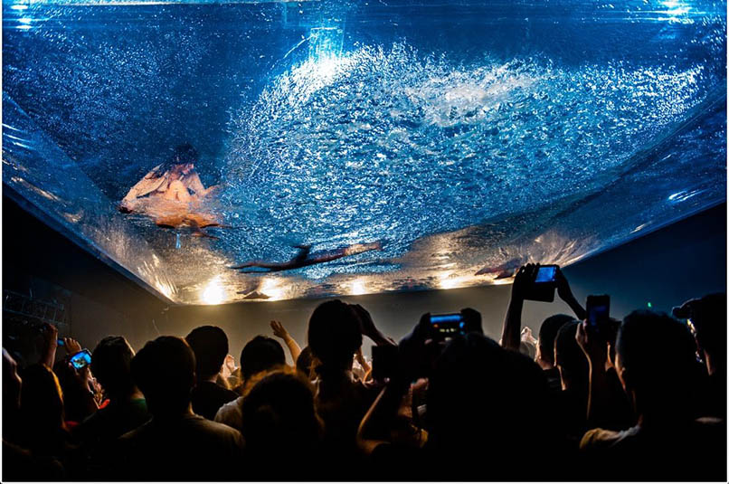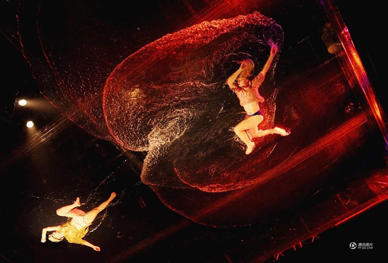 《極限震撼》中有一幕演出是4位女舞者在一個(gè)裝了一層水的薄膜上濕身熱舞,水膜高高架起,觀眾稍微一抬頭就能觀賞到女舞者的曼妙舞姿,更允許觀眾們與舞者們零距離接觸。這種現(xiàn)場(chǎng)互動(dòng),中國(guó)觀眾相對(duì)西方觀眾更為含蓄內(nèi)斂,對(duì)此,舞者Laila表示現(xiàn)場(chǎng)他們會(huì)用特有的方式去調(diào)動(dòng)觀眾的情緒。