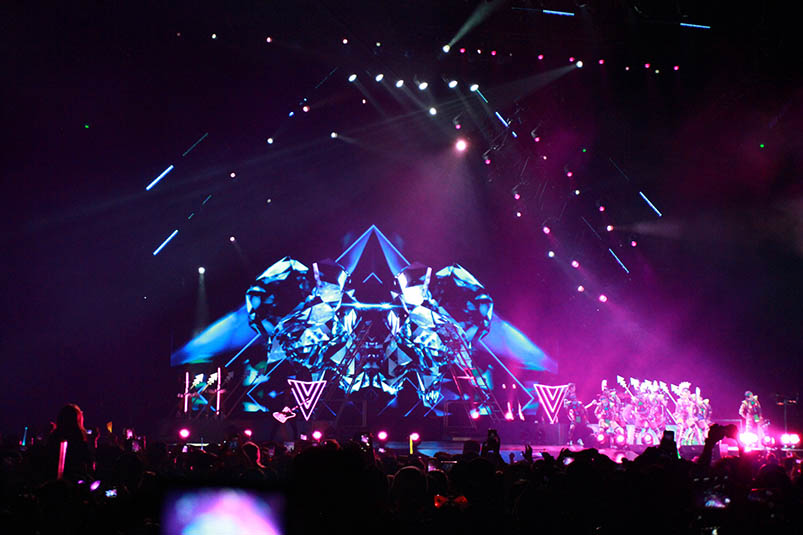 當(dāng)晚,在特別嘉賓DJ雙人組The Dolls長達近半小時的熱場后,Katy Perry身著一襲紫色熒光虎面緊身超短于晚上21時閃亮登場。水果姐在近90分鐘的時間里,以百變造型和勁歌熱舞,high翻全場,浩洋電子燈具交相輝映,完美融入音樂旋律中,讓臺下粉絲徹底沸騰!