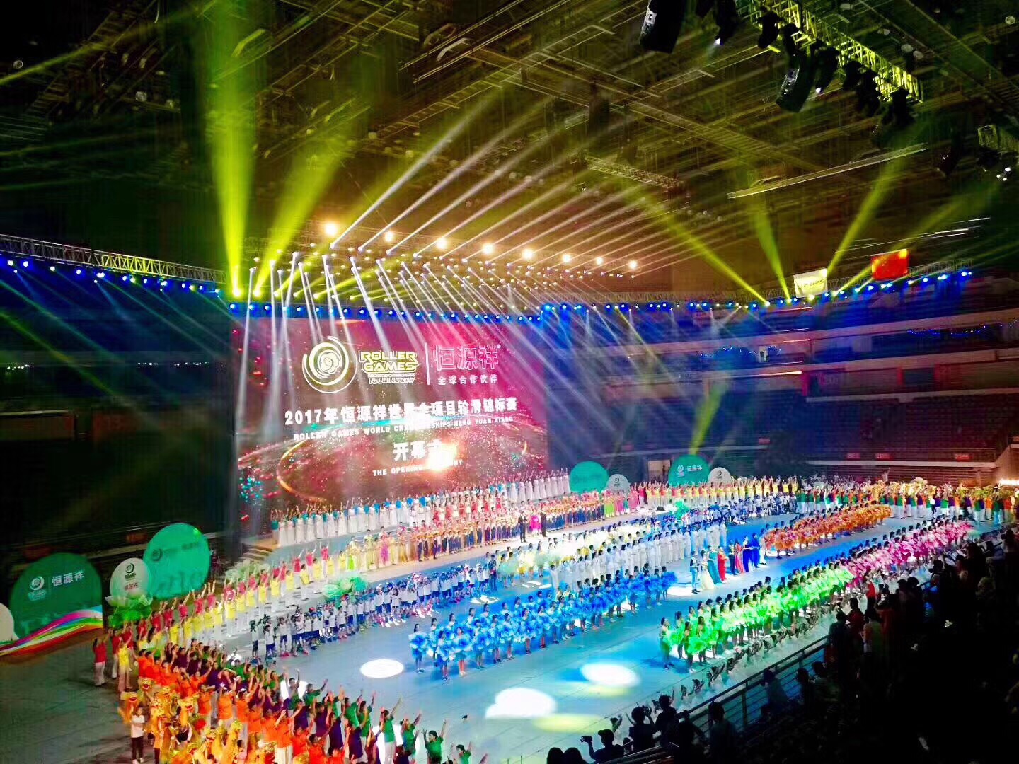 2017年恒源祥世界全項目輪滑錦標賽于9月2日在“世界輪滑之都?南京”的奧體中心體育館盛大開幕。這是繼2016年舉辦速度輪滑世錦賽后,2017年在南京舉辦全項目輪滑世錦賽,是國際A類賽事,規模更大、級別更高的錦標賽,也是國際輪聯首次舉辦全項目輪滑世錦賽。此次開幕式中運用了浩洋專業舞臺燈具約500臺:光束燈G9B、圖案燈V1500T-E、LED防水PAR燈OVAL48D、光束燈V2000B等,浩洋燈光精彩亮相此次開幕式,助力呈現“世界輪滑之都”南京的魅力。