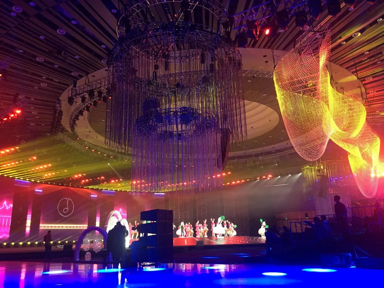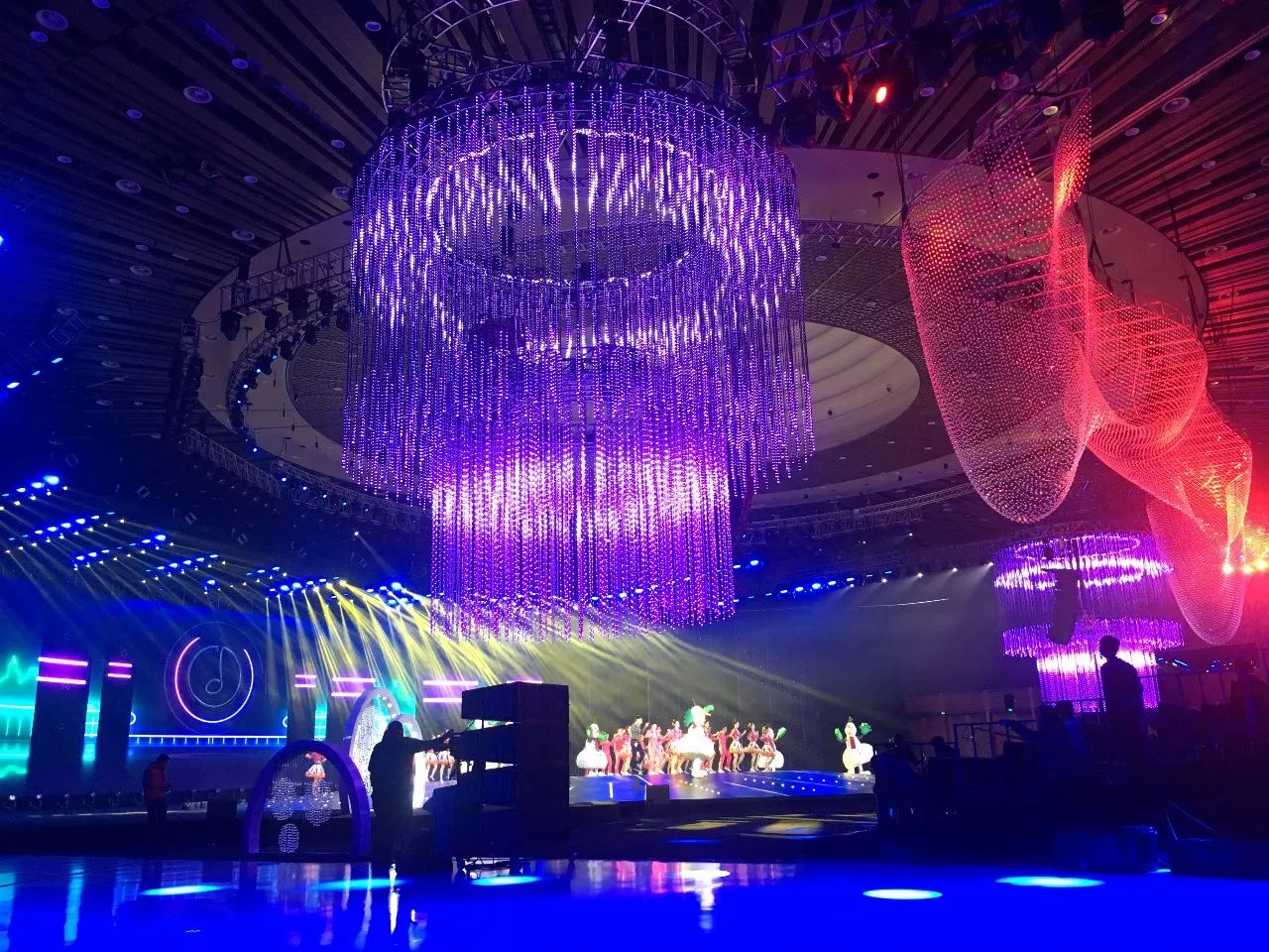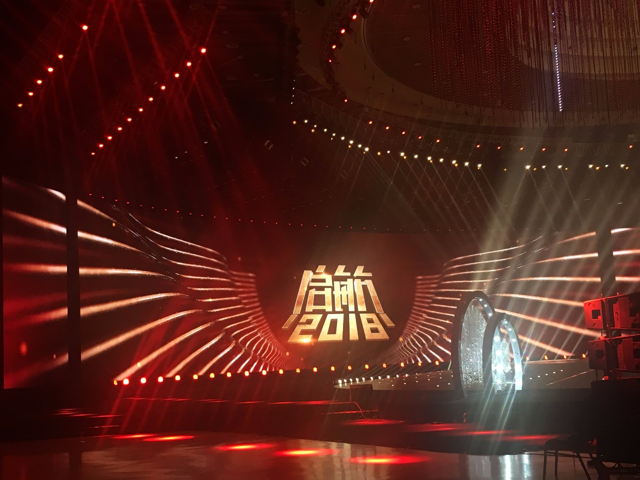 2018年,央視繼續不走尋常路,首次走出演播廳,舉辦地落戶了雁棲湖,并于2017年12月31日20:00在CCTV1、CCTV3、CCTV4三臺聯播。此次由北京東語華星文化藝術有限公司傾力打造的晚會,主題為《啟航2018》,云集了眾星加盟,在舞臺上詮釋“國”“家”“情”“美”。另外,晚會實現了娛樂與文化的融合,通過不同的表演形式將2017年的國家大事件在舞臺上表現出來,浩洋電子專業舞臺燈光產品光束燈V2000B、LED搖頭染色燈GLW7QZ、光束燈PT189B等也為晚會提供有力的燈光支持,為全國觀眾帶來一場漲知識又有視覺享受的新年晚會。