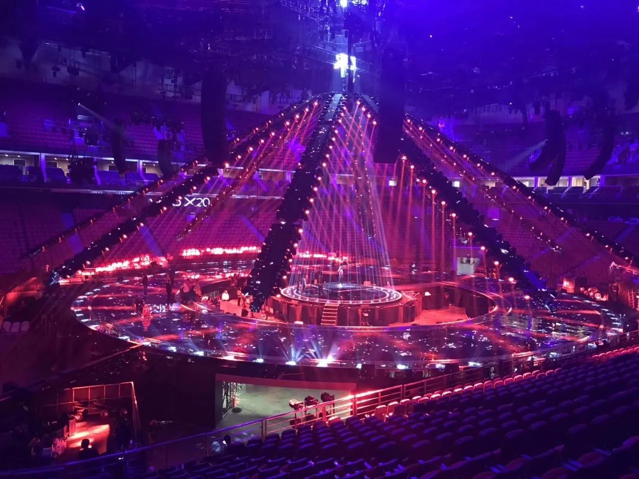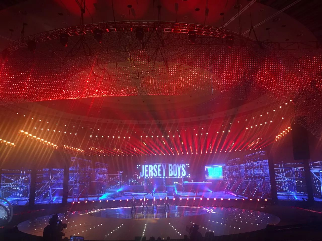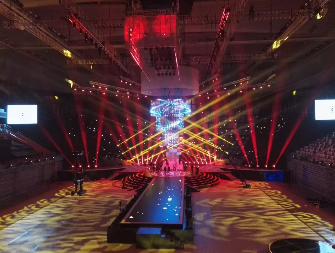 追求新亮點的江蘇衛視今年刷新了演唱會舞臺:四面臺升級為360度全景巨型圓舞臺,給觀眾帶來前所未有的視覺沖擊;機械燈臂組成變形空間站,天幕地屏配合猶如浩瀚宇宙。根據比利時的燈光設計師Ignace介紹,去年所有構造和場景都是為扁長型舞臺而設計,今年所有設計都是為了讓觀眾感受到前所未有的一種“沉浸感”,“(每一個區域)觀眾到舞臺距離一致,這和去年有很大的不同,觀眾的感受獨具一格,是宇宙的感覺。”