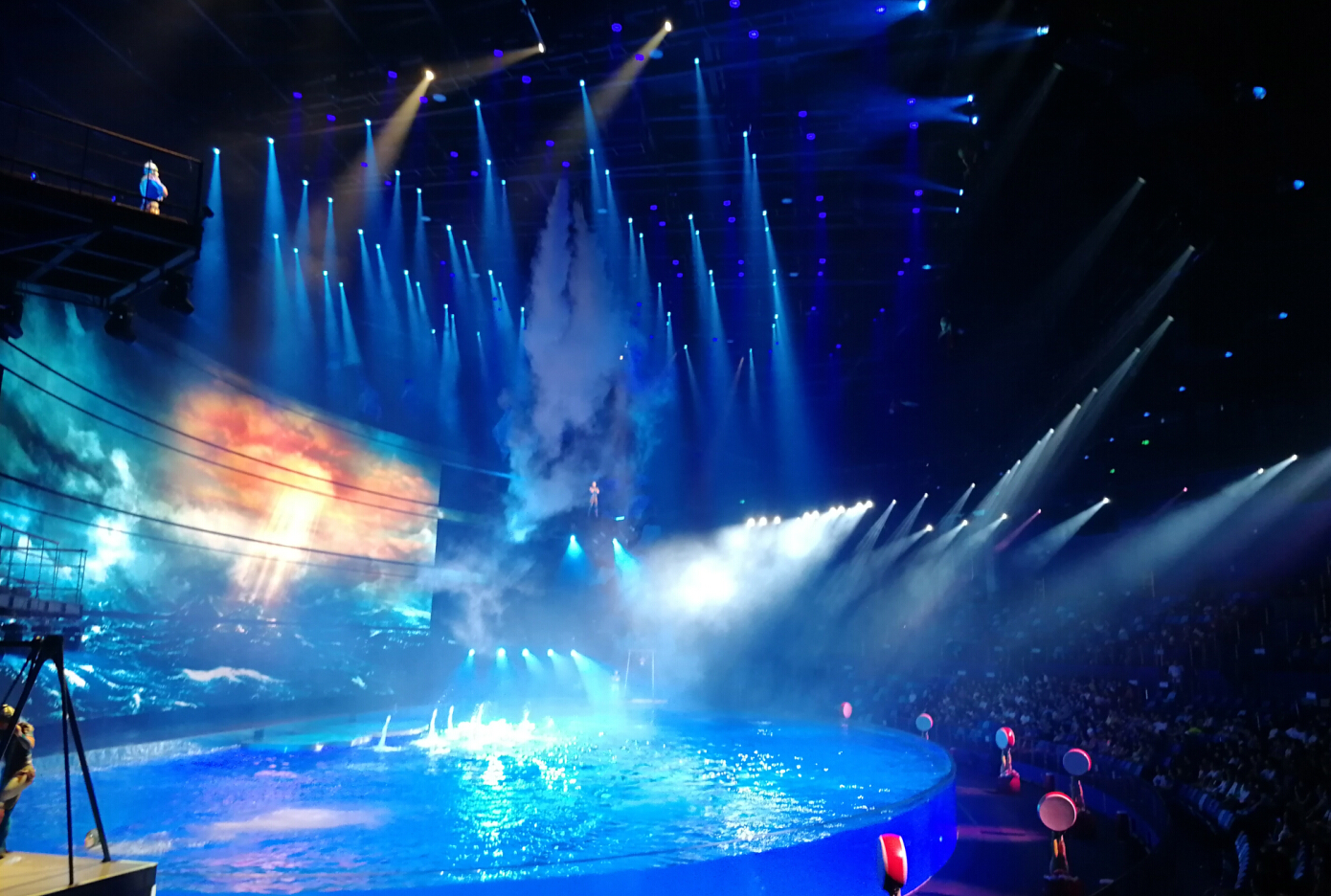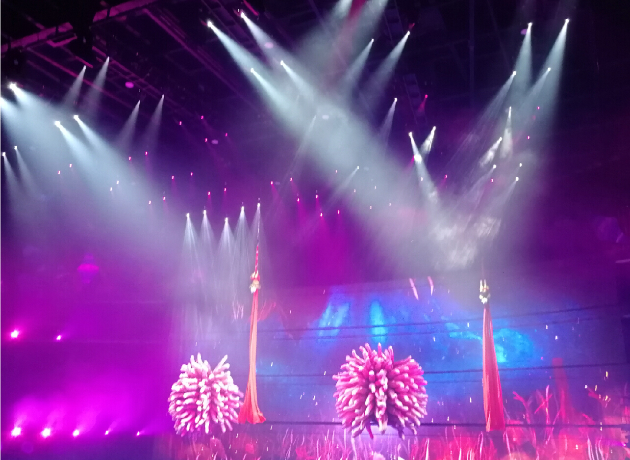 演出中,浩洋電子全能王三合一電腦燈G12HYBRID、切割燈V3000P、圖案燈V2500S、LED PAR燈A51-E近400臺專業舞臺燈光設備為現場助陣。浩洋燈光設備投射出炫目的燈光,與現場的煙霧、水面特效、無人機、各種大型自動化舞美機械在內的國際頂尖舞臺技術相互配合,融合水中芭蕾、空中藝術、花式跳水等眾多表演元素,共同呈現原創鉅制,還原了傳說中神秘古老的“亞特蘭蒂斯”世界。