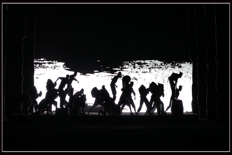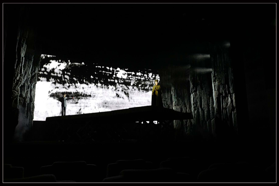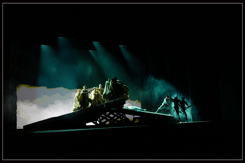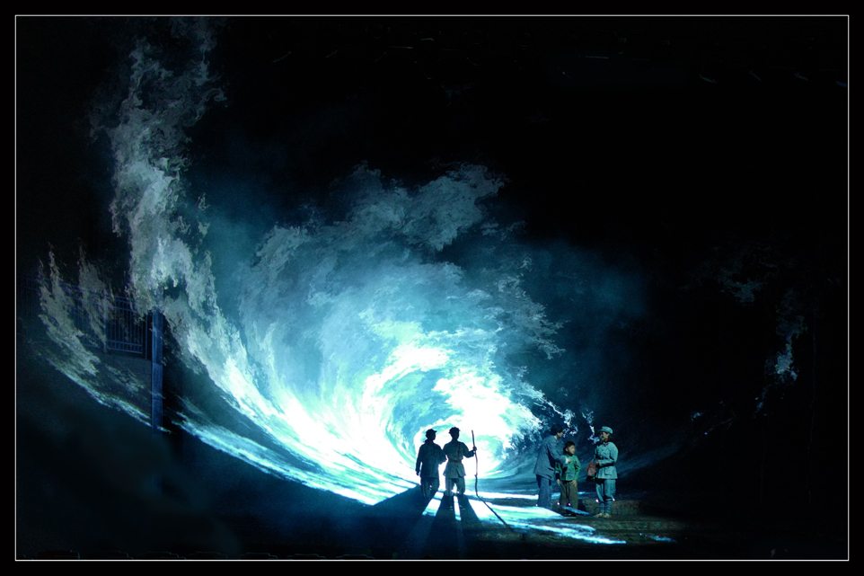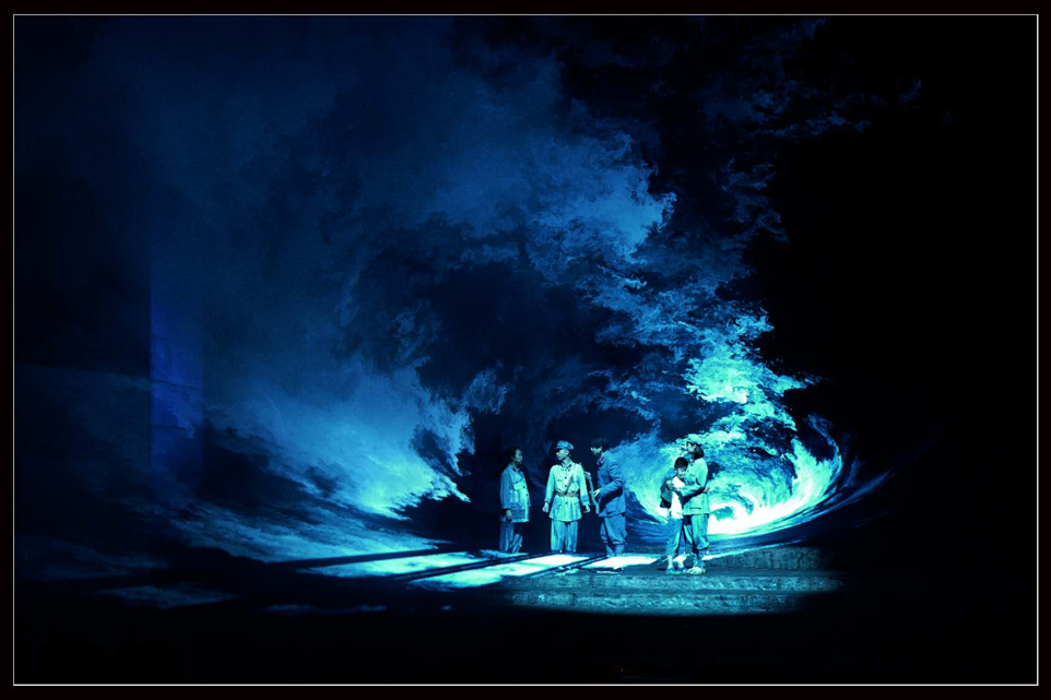 舞臺(tái)劇中 “交互式”的藝術(shù)表現(xiàn)形式,涵蓋了話劇、舞劇、舞臺(tái)美術(shù)、音樂(lè)、音響、多媒體、燈光等一系列在其中,讓劇目更具有生命力,更具有視覺(jué)感官?zèng)_擊,能夠?qū)v史重現(xiàn)在觀眾的眼前,呈現(xiàn)一個(gè)逼真的全維度感官場(chǎng)景。