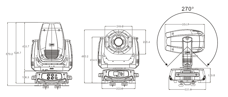可從控臺完成更改DMX地址碼,遙控開關燈泡,機器重設,聲控模式的轉換等功能