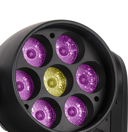 LED類型:7顆15W大功率RGBW 4合1 LED, 達到均勻細膩的混色效果