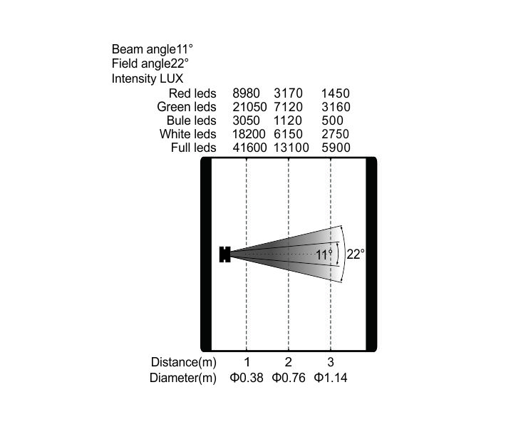 變焦范圍:光束角:11°,光斑角:22°