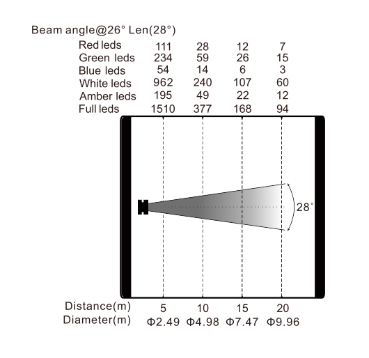 光學角度:28°@26°鏡頭(可選19°/36°/50°)