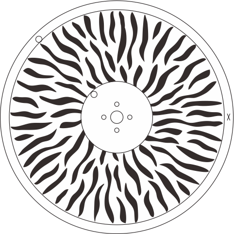 1個旋轉圖案盤:7個插拔式的旋轉圖案片+白圓,帶圖案抖動和圖案任意定位功能,圖案外徑:30mm