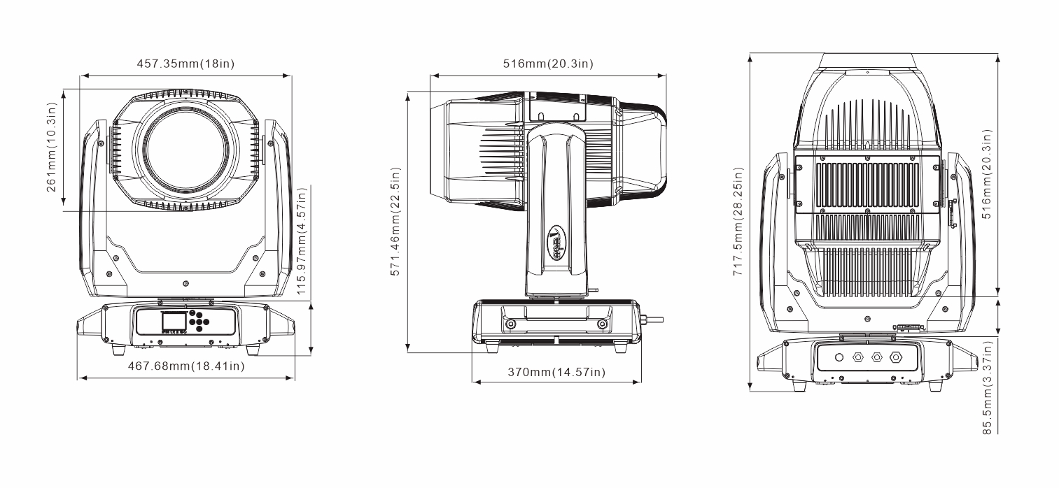 變焦范圍:光束模式: 2.2°- 28°,圖案模式: 5.5°- 45°,染色模式: 10°-40°