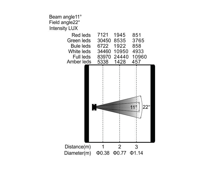 變焦范圍:光束角:11°,光斑角:22°