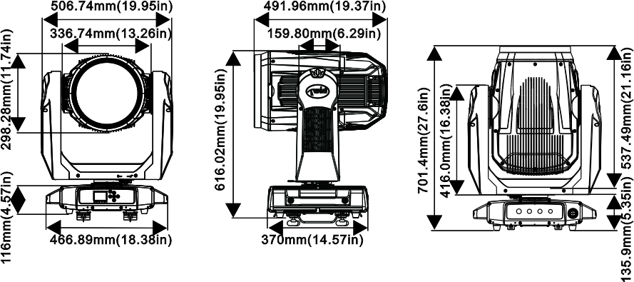 1個色片盤:16個色片+白光,半色效果,色片可任意定位,帶雙向旋轉的彩虹效果
