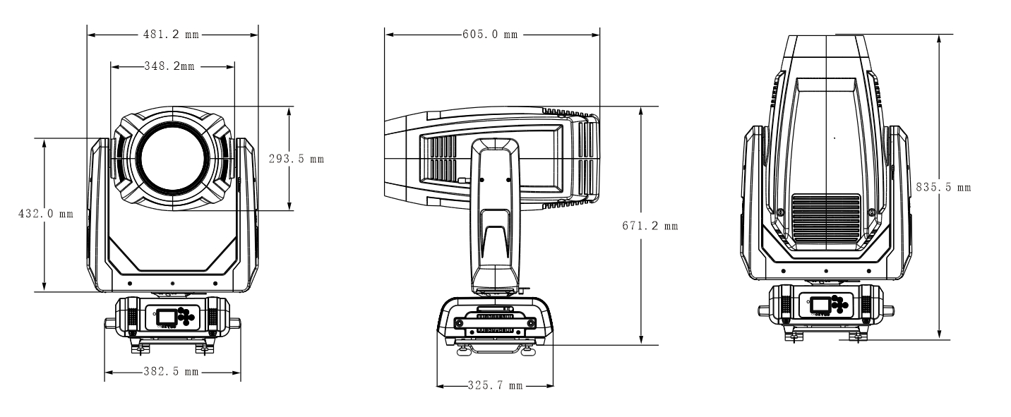 切割盤:一組由4個(gè)切角片組成可控制的光斑切角系統(tǒng),整個(gè)切角系統(tǒng)可做90°旋轉(zhuǎn)