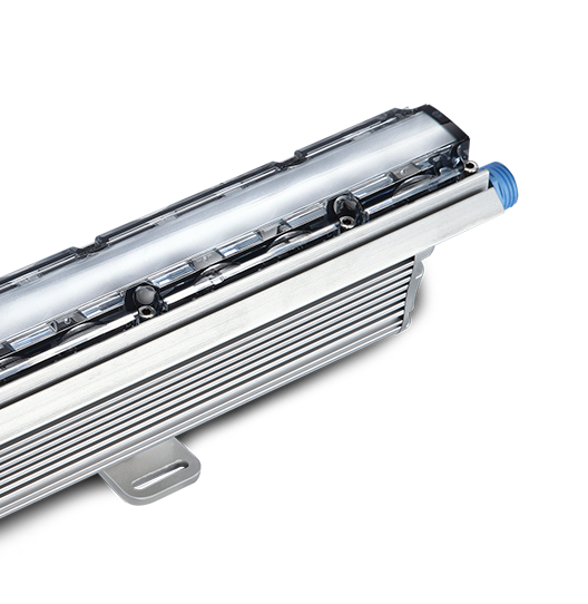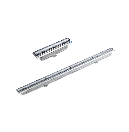 ELV-G 系列RGB / RGBW / RGBA /DW(冷白+暖白) LED染色燈是一款高功率條形燈,單臺燈長度可選1英尺(305mm)和4英尺(1229mm),采用國際通用的DMX512信號控制,順滑的線性調光,高亮度輸出, 高檔的外觀設計,可選不同角度的柔光片以及擋光防眩板,是戶外戶內渲染照明,面光燈的最佳選擇。